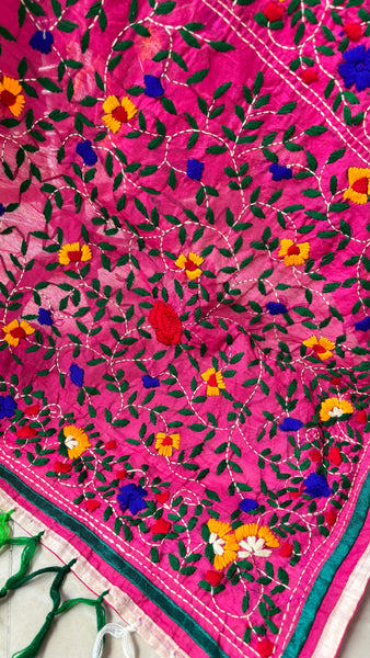 Embroidered with love & perfection, this is a light weight chanderi cotton dupatta.  Pair it with any kurta and let the world know your phulkari quotient.